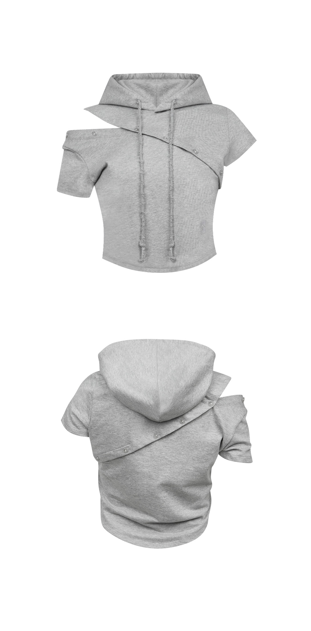 - 썸머시즌용 얇지만 밀도높은 코튼 원단을 사용하여 제작한 크롭 기장의 반팔 후드 입니다.
