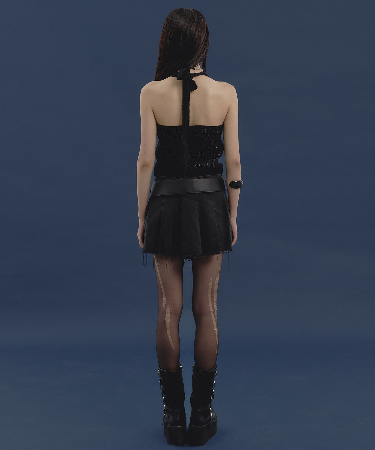 - 넥 라인에서 자연스럽게 연결되는 스트랩은 길게 제작되어, 타이 업 스타일링으로 다양한 연출이 가능합니다.