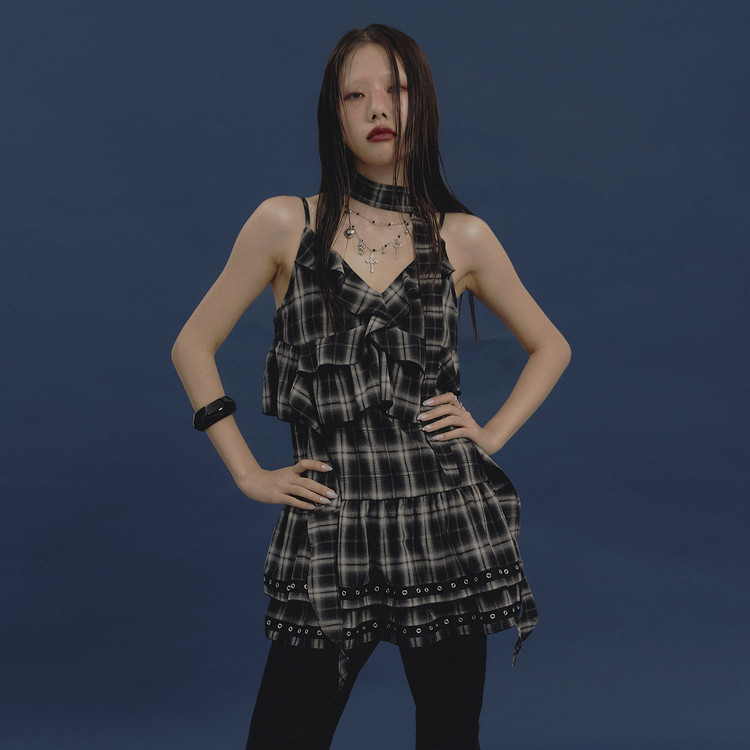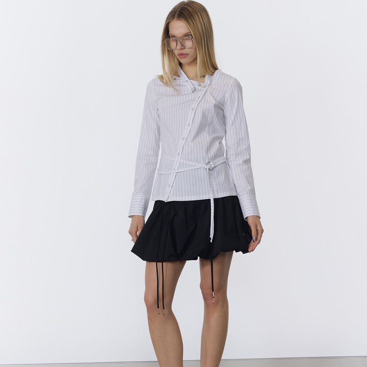 - 별도의 넥 스카프와 사이즈 조절을 위한 어깨 스트랩으로 타이드 연출 가능