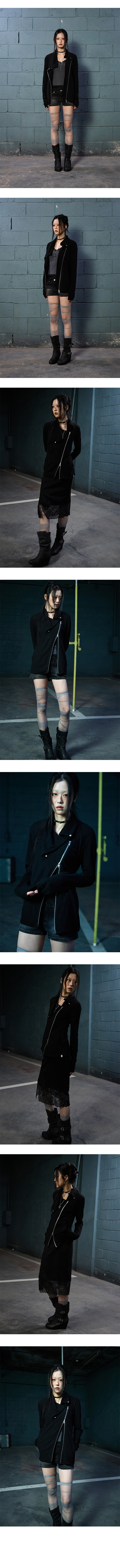 - 사선 YKK 2way 지퍼 및 사이드 주머니 마무리