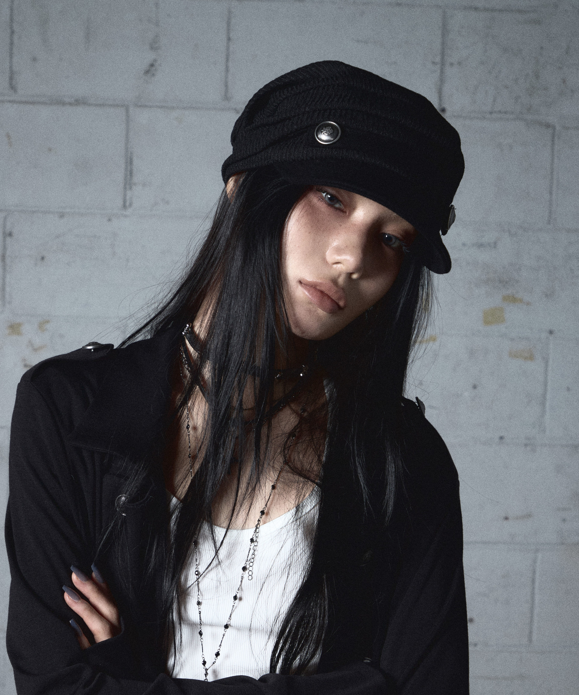 ✦ 니트 짜임 포인트 원단과 소프트한 텍스처 원단을 믹스해 제작한 니트 캡