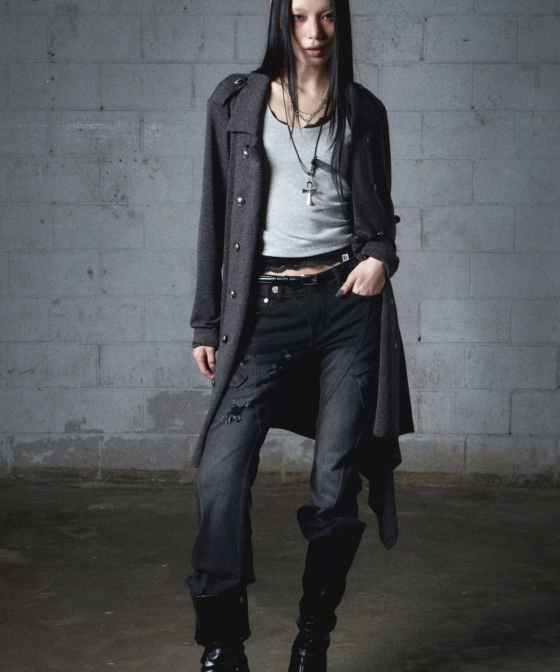 ✦ 앞중심 버튼으로 길게 내려오는 단작 고정으로 연출하거나, 전체 버튼을 오픈하여 더블 여밈으로 가디건 변형 착용이 가능한 스타일링 가능