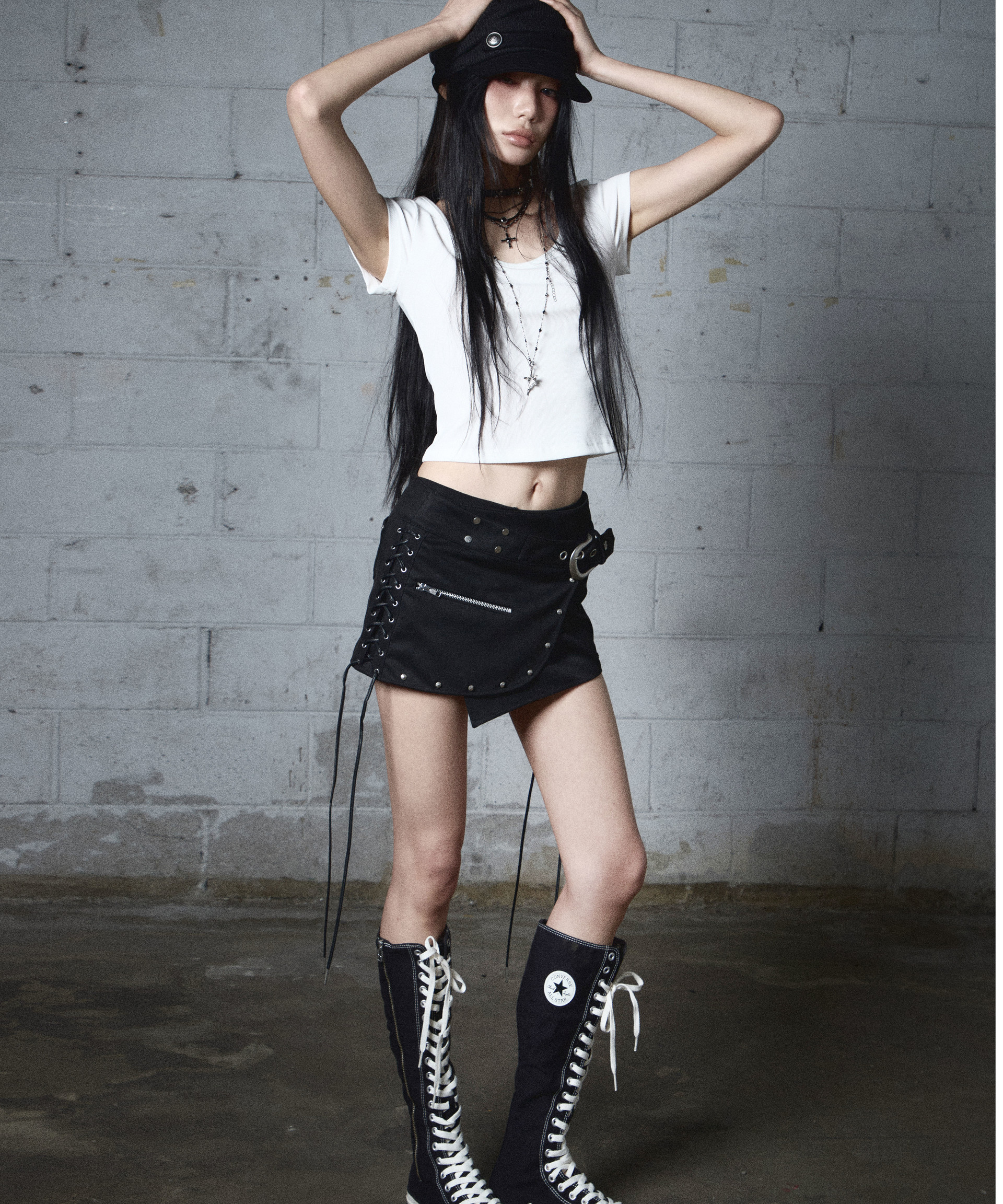 3/13 예약배송 Stud Lace-Up Wrap Skirt (BLACK)TIME SALE