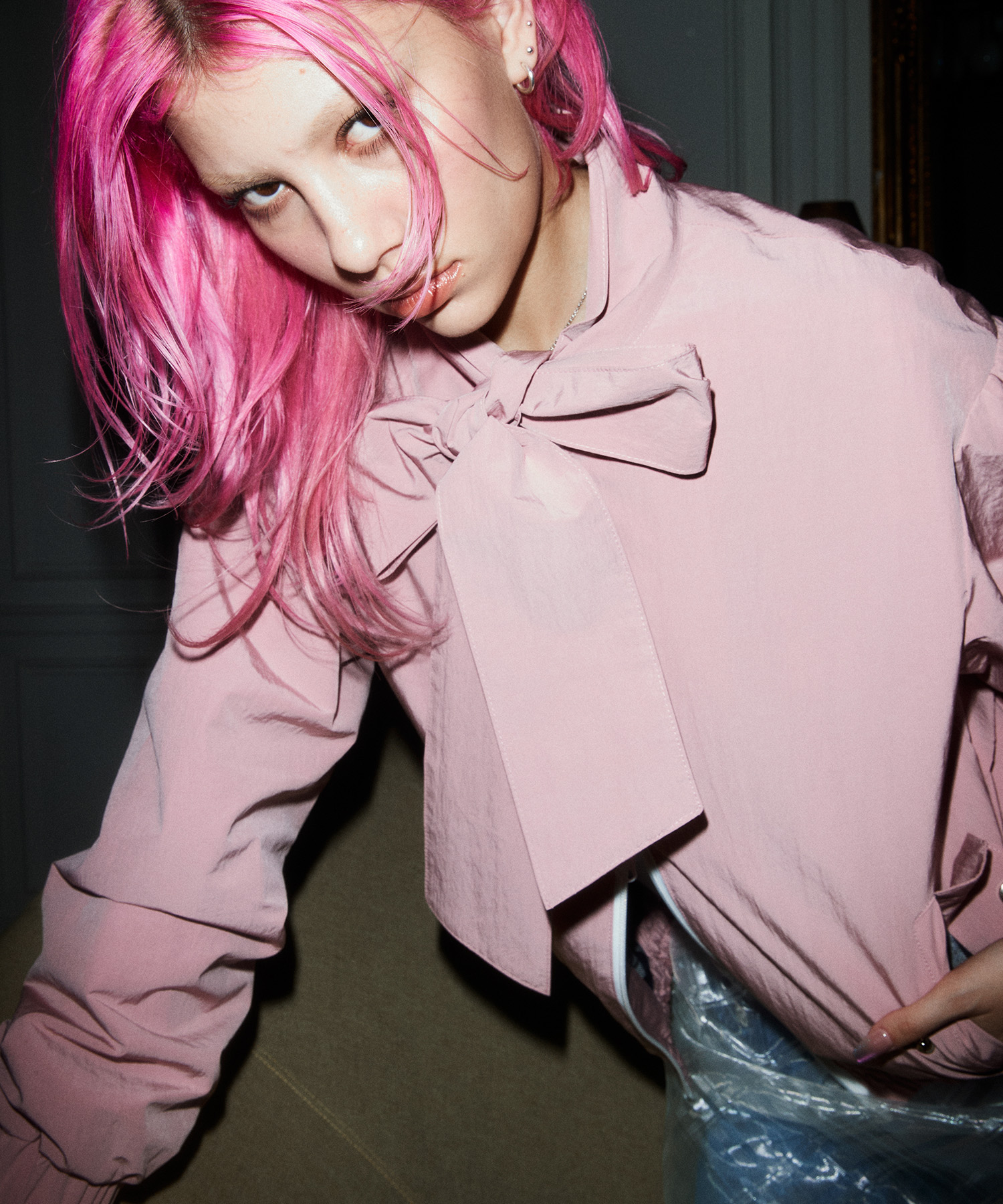 스카프 넥밴드, 퍼프 셔링 슬리브, 메탈스냅 전면 포켓, 2way 나일론 지퍼, 소매/밑단 이밴드 마무리로 디자인 되었습니다.