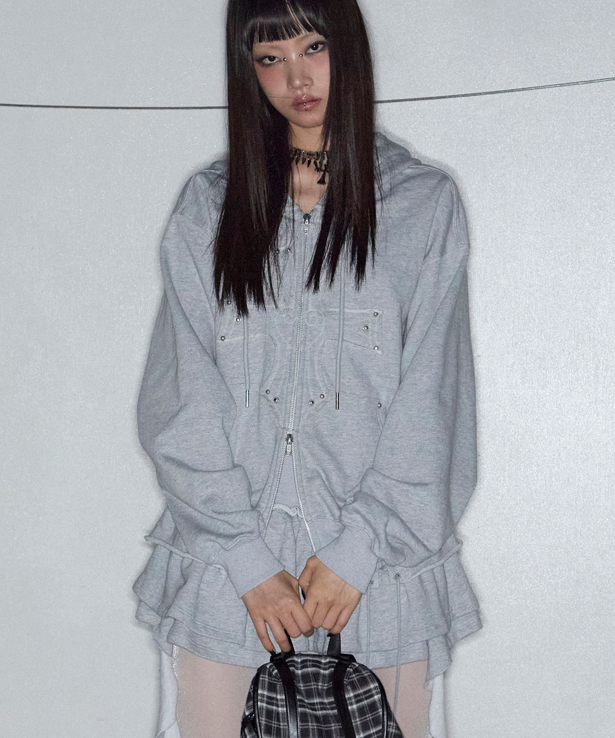 코튼 스웻 원단으로 제작된 오버핏 후드 집업
