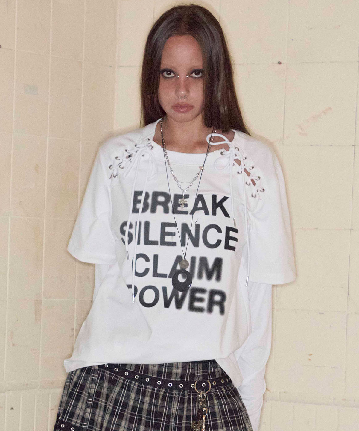 - 시즌 슬로건 "BREAK, SILENCE, CLAIM, POWER" 그래픽 로고 프린트