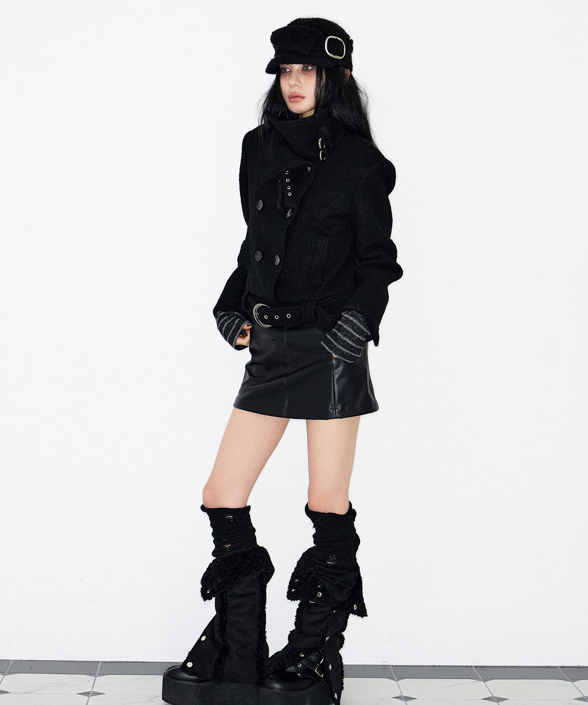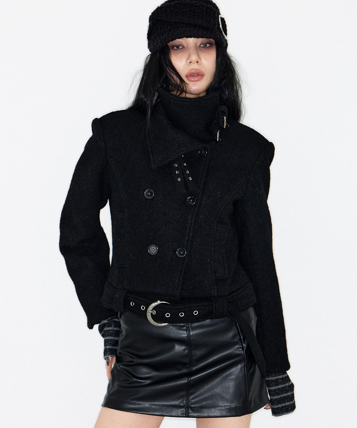 - 넥 라인 2개의 벨트로 하이넥 연출 및 오픈시 와이드 카라로 착용 가능