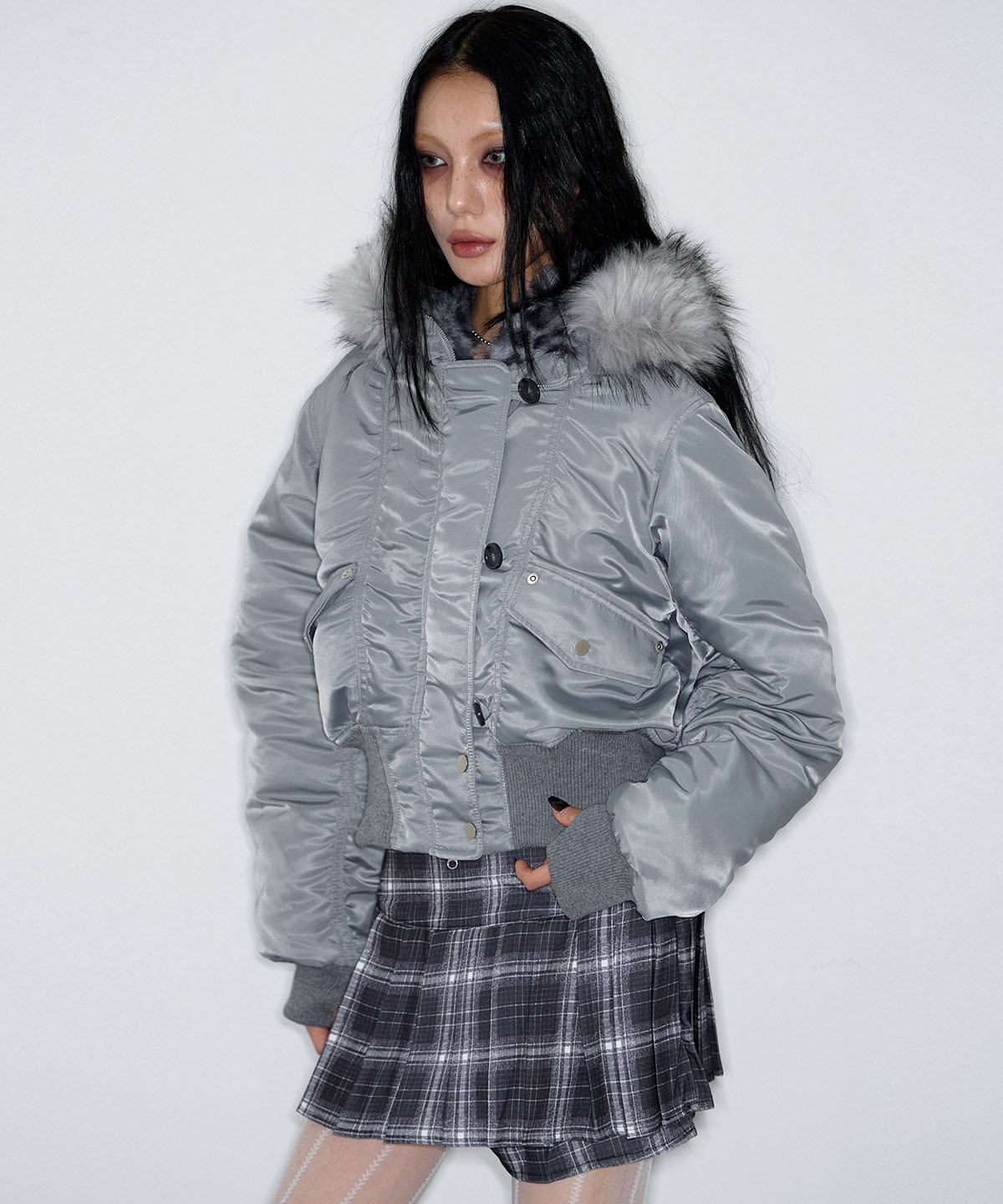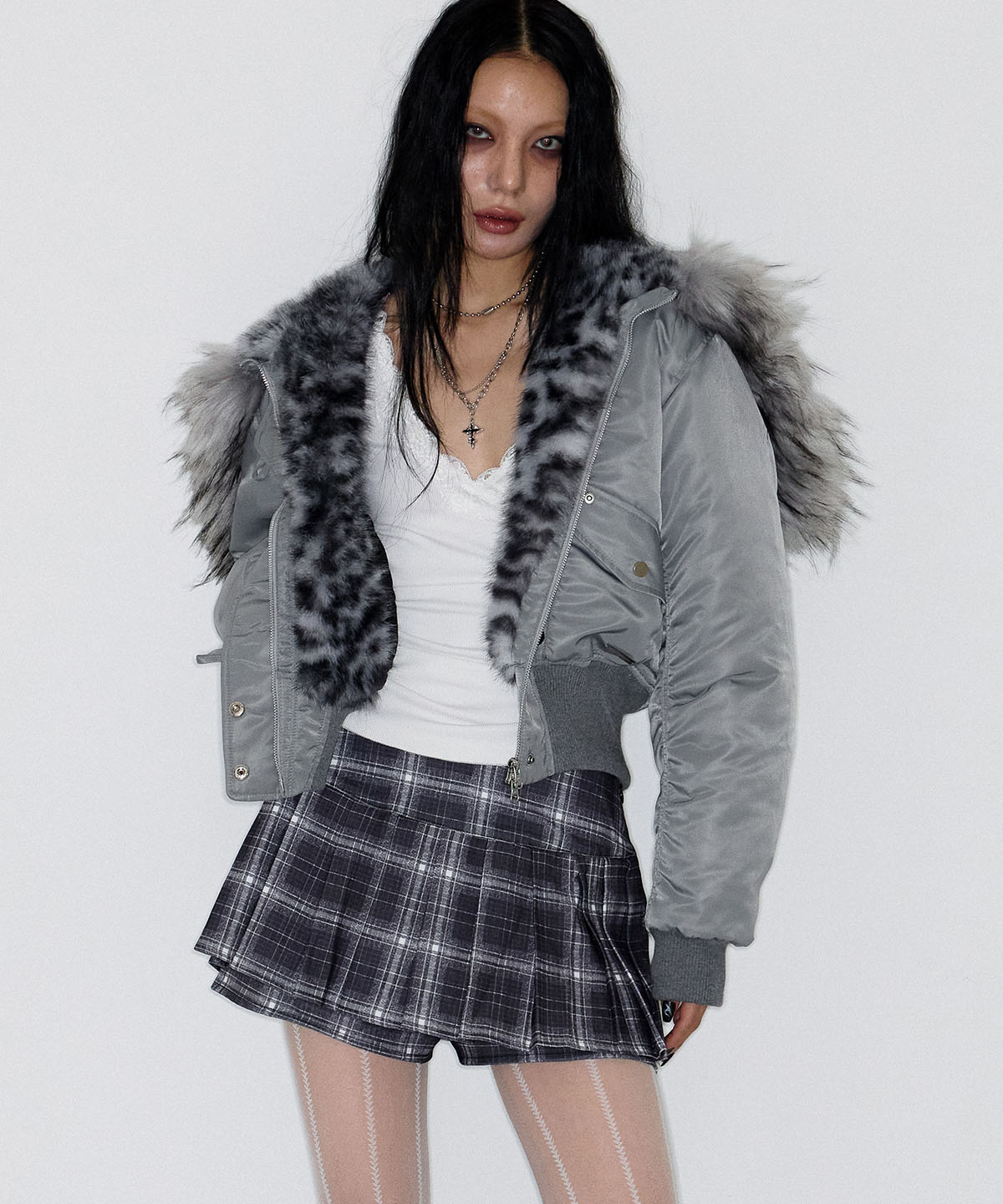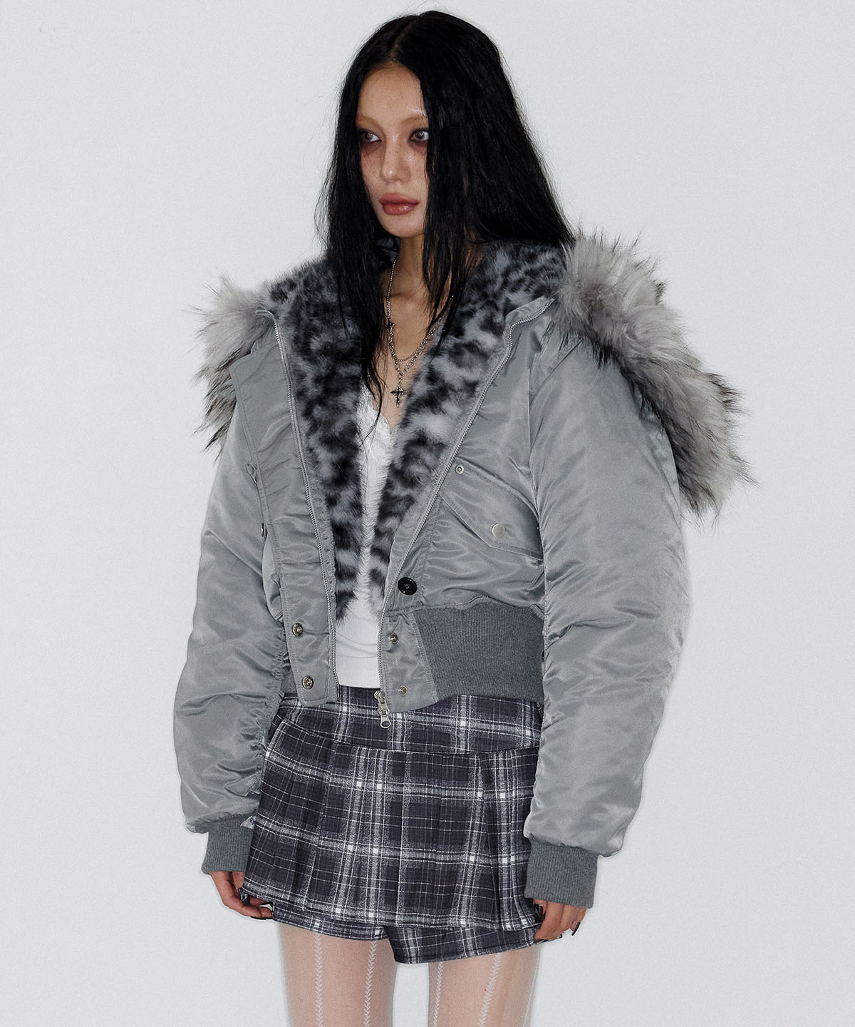- 레오파드 포인트 퍼와 벌키한 투톤 퍼를 믹스해 제작한 MA-1 봄버 자켓