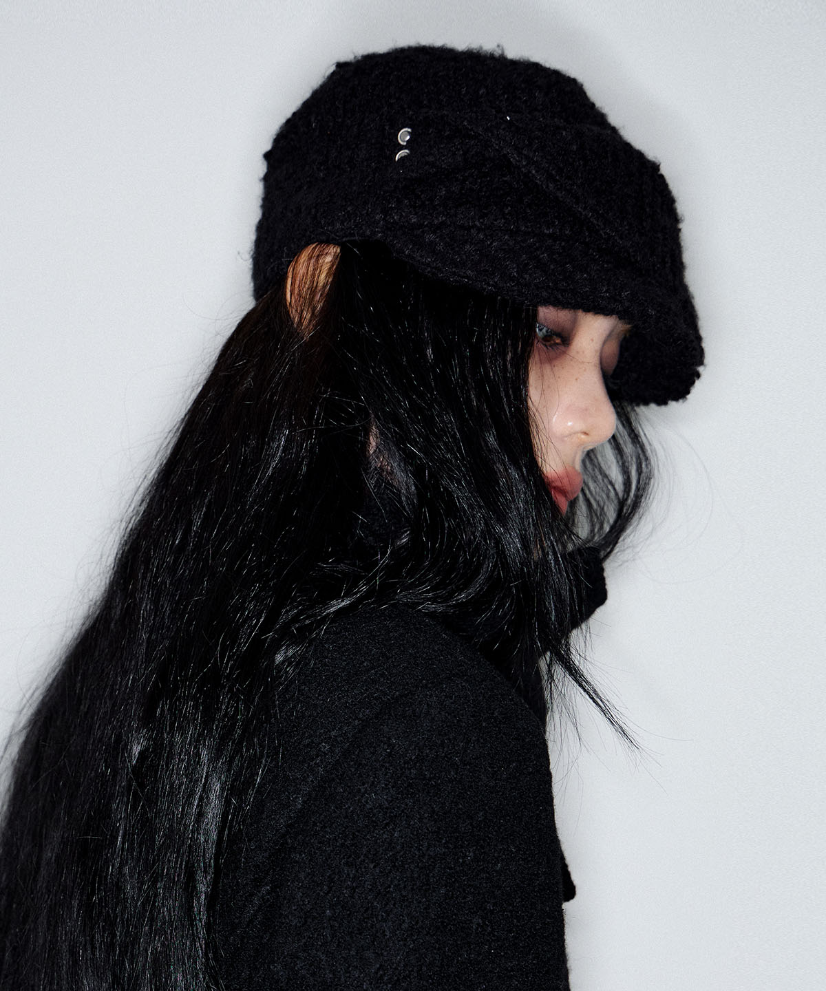 - 부클 헤어리 원단으로 제작한 벨보이 캡