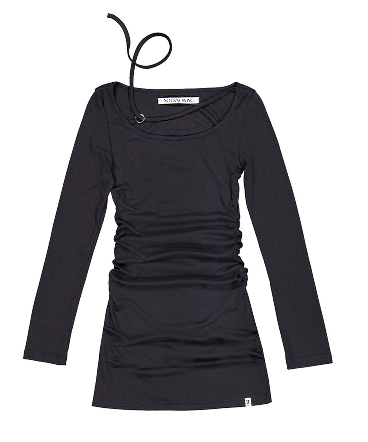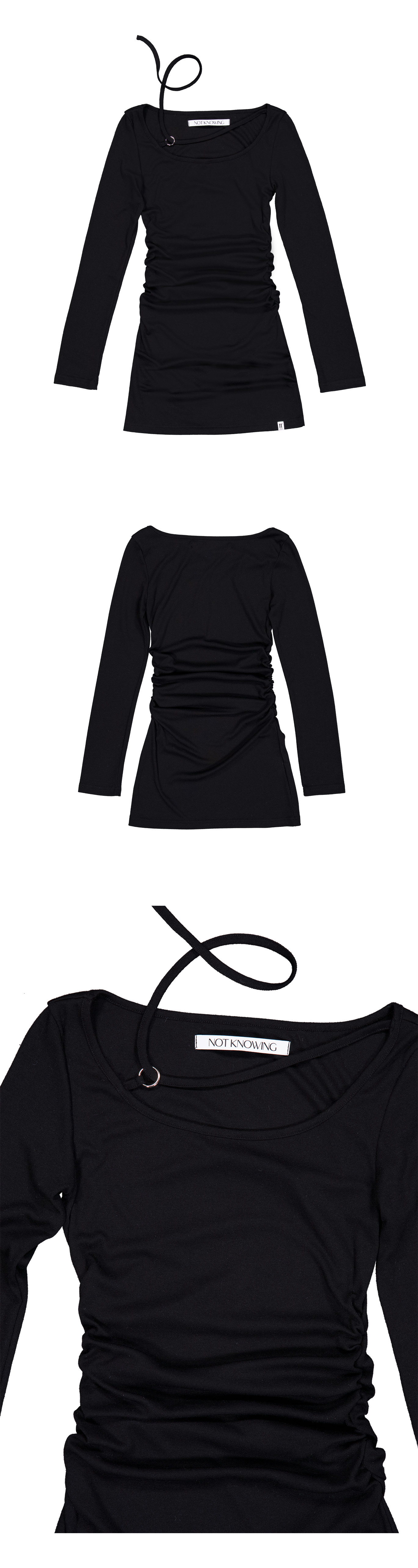 - 부드러운 조직감 소재로 제작된 셔링 디테일의 롱 티셔츠